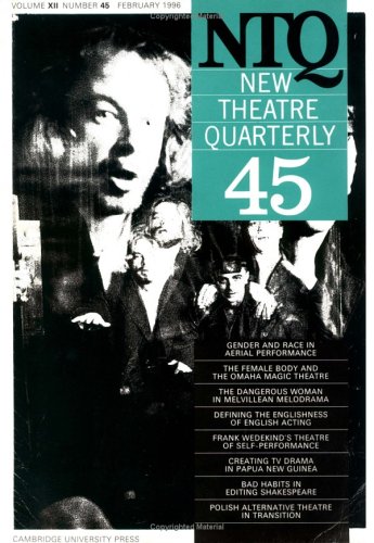 New Theatre Quarterly provides a forum where theatrical scholarship and practice can meet. Topics covered in number 45 include: Palimpsestus: Frank Wedekind's Theatre of Self Performance, and 'Leaking Bodies and Fractured Texts': Representing the Female Body at the Omaha Magic Theatre.